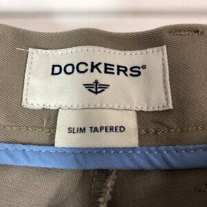 Dockers Flat Front Gray Slim Tapered Pants Size 34 X 29