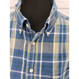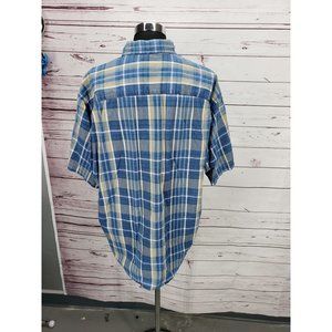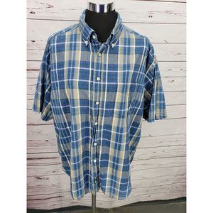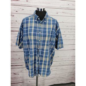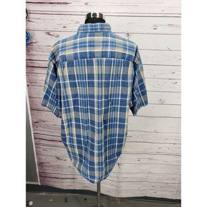 Docker's Indigo Short Sleeve Blue Plaid Size Large Button Up