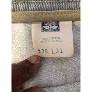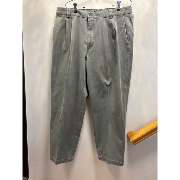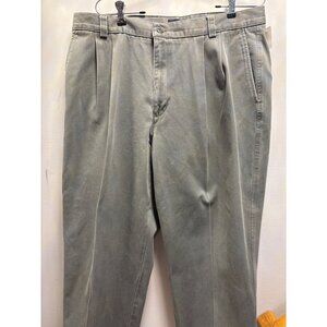 Dockers Khaki Mens Gray Pleated Dress Pants 38W x 31L Cotton Blend Classic Fit