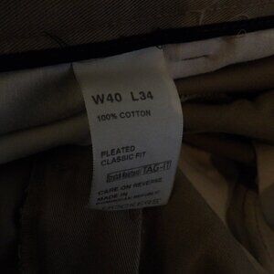 solid khaki colorway , 4 pocket style with belt loops , back pockets button closed , 100% Cotton , Straight Leg , Waist Sz 40 Inseam 34" , Good pre owned or used condition no holes or stains , minimal to minor washing wear , could use ironing , pet friendly non smoking home