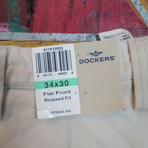 Dockers Khakie Flat Front Cargo Pants, men's 34x30, new with tags, 100% cotton