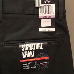 Brand new Docker’s Khakis. Wrinkle free, slim fit, flat front. 32 x 30. Khaki Green