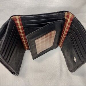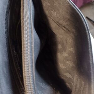 This stylish soft genuine leather Dockers wallet and shoulder bag set provides you with all the storage you need. The wallet features a drop pocket to store your bills, one viewable pocket for your ID, fifteen slots for your cards, a zip pocket for your change and two other pockets under the two outside card sections. There is also one zip pocket on the outside of the pocket. The shoulder bag features a flap closure with a magnetic snap and has three larger drop pockets and two smaller side by side drop pockets, one larger and one smaller zip pocket. There is one larger zip pocket on the back. The adjustable shoulder strap has a drop from 14" to 16". Both the wallet and bag are in very nice condition with no stains, tares, snags or scratches on the outside leather or inside liner. The bag is 9" x 9" x 3".