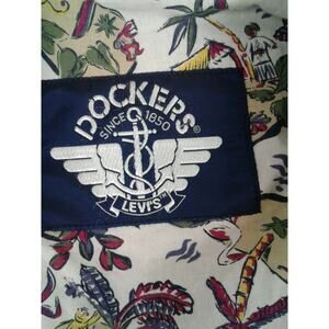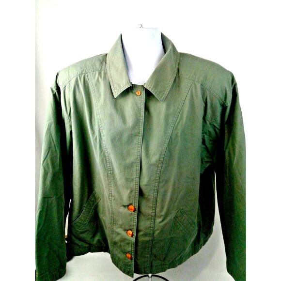 Dockers Levis Womens Green Jacket w/Multi-Color Island Design Lining Sz L RARE