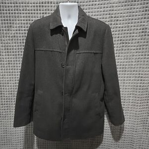 Dockers Long Insulated Overcoat Mens SzM FullZip Button Charcoal Wool Blend Cozy