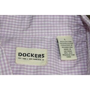 Dockers Long Sleeve Button Collar Button up Men's Purple Plaid Shirt size Large