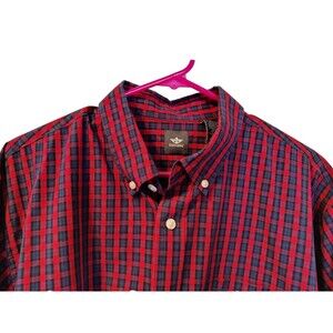 Dockers Long Sleeve Red-Blue Plaid Button Down Shirt Size XL