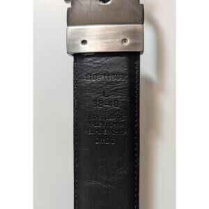The Docker's Men's 1.5 Inch Cut Edge Reversible Belt in Brown Black, size L 38-40, is a stylish accessory for men. Made of faux leather with a solid pattern and metal hardware accents, this fashion belt features a classic design with a logo character. The adjustable belt is ideal for everyday wear, offering a versatile and timeless style that can complement a variety of outfits.