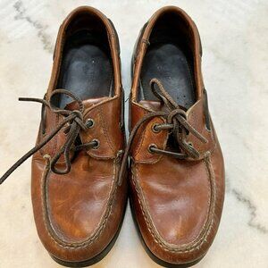 Dockers Men's 90-1449 Brown Leather Moc Toe Lace-up Deck Shoes Size 9