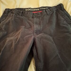 Upgrade your wardrobe with these stylish black cargo pants from Dockers. Perfect for any occasion, these pants offer both comfort and style. Size 40 x 30. waist side to side measures 19 inches. Length 40 inches. Inseam 28 inches.
