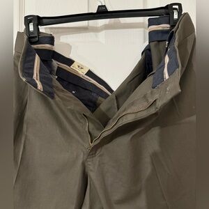 Button welt pocket at the back of these men's pleated khaki pants