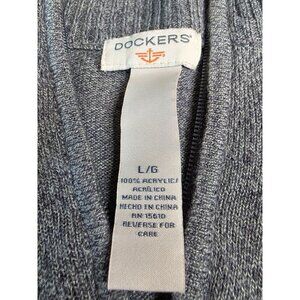 This Dockers sweater features a colorblock design with a half-zip collar, crafted from 100% acrylic for comfort and durability. Designed for casual wear or layering.
