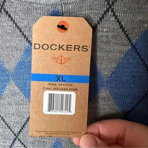 Dockers Mens Crew Neck Long Sleeve Sweater Gray Blue Diamond Pattern NWT