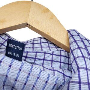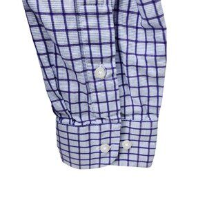 Dockers Mens Fitted Stretch Collar Plaid Shirt L 16/16.5 Purple Check
