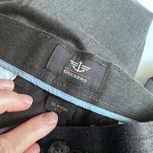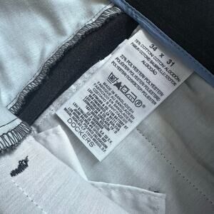 You're viewing a handsome pair of Dockers dress pants. These are gently used and in great condition. They're a versatile gray color and feature a flat front design for a modern, streamlined look. The size is 34x31, perfect for a comfortable and stylish fit. These pants are ready to elevate your wardrobe! Don't miss out – grab them today!