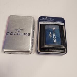 Keywords: Dockers Mens Leather BiFold Wallet Slim Black Retro W/Case NEW Slim Fold