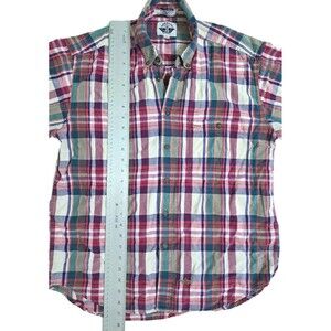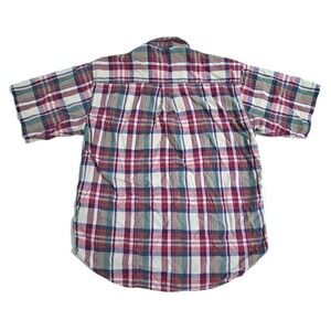 Dockers Men's Madras Plaid Short Sleeve Button Up Shirt Red Green Purple Vintage