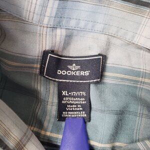 Dockers Mens Plaid Long Sleeve Button Up Shirt Size XL Blue Easy Care Casual