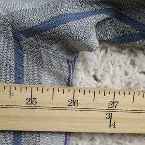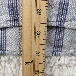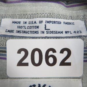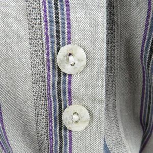 Pre-Owned Condition! 100% Cotton. Handsome Gray Button Down Shirt with Plum, Black & Blue Color Lines and Marble Stone Style Matching Buttons(spare attached).