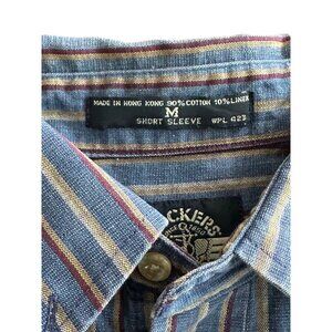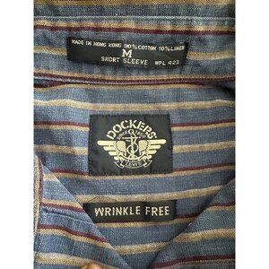 Dockers Mens Short Sleeve Striped Shirt M Blue Cotton/Linen Blend