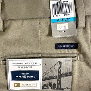 Dockers Men's Signature Khaki Flat Front Classic Fit Cotton Preppy Office 36x32
