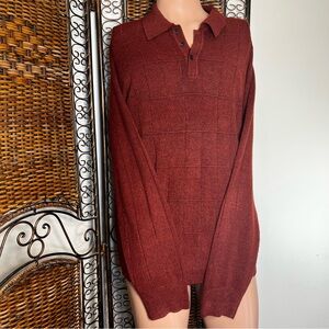 Dockers Mens Size XL Sweater Burgundy Red Button Collar Pullover Lightweight