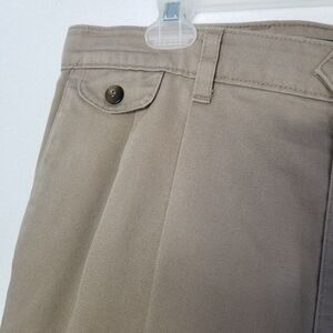 Dockers Men’s Tan Pleated Chino Khaki Dress Pants Cuffed 36 Classic Trousers