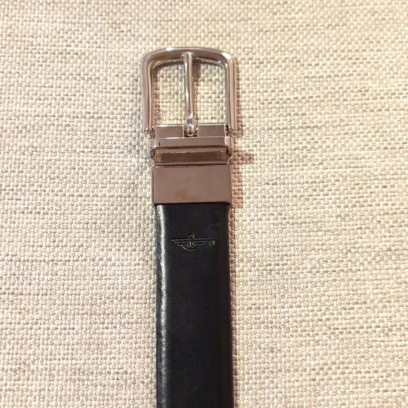 Features a chrome silver classic buckle, embossed Dockers logo below the buckle and 1.125" wide belt strap to easily fit through your pant loops. Adjusts well with 7 holes to get your perfect fit. For best care, spot clean only.