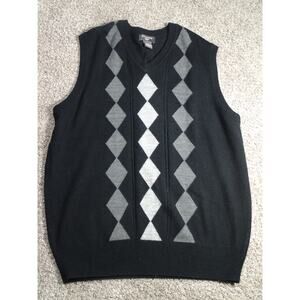 Dockers Men's V-Neck Sweater Vest Black Argyle Diamond Pattern Size L Soft Knit