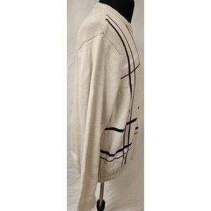 Brand & Description Nice Looking Dockers Mens XL Tan Beige Striped Crew Neck Knit 100% Cotton Long Sleeve Sweater