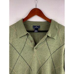 Dockers Mens XXL Green Argyle Knit Long Sleeve Collared Sweater