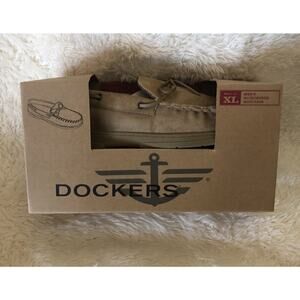 Dockers Microsuede Moccasin Slippers, Rubber Sole Tan Men’s Size 13 New In Box