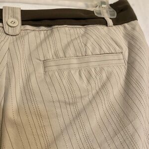 [Cream And Brown Pinstripe Trousers With A Zip Fly And Button Fastening, Featuring A Belt Loops]