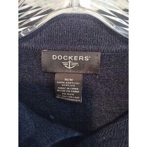 The Dockers Navy Blue Argyle Two Button Collared Sweater in Size Medium is a stylish and classic addition to any man's wardrobe. Made by the reputable brand Dockers, this sweater features a collared neckline and a two-button design for a sophisticated look. The navy blue color adds a touch of elegance, making it versatile for various outfits and occasions. With its comfortable size medium fit, this sweater is perfect for men who appreciate both style and quality in their clothing choices.