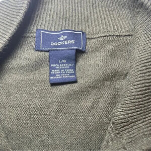Keywords: Dockers sweater, olive green sweater, argyle sweater, 1/4 zip sweater, mens knit top, pullover sweater, casual sweater, mens sweater large, green argyle sweater, quarter zip sweater, mens fashion, knitwear, long sleeve sweater
