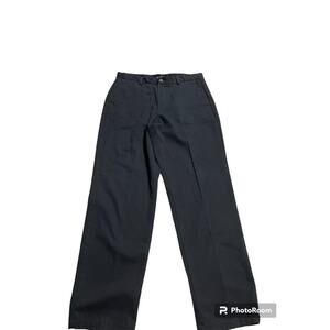 Dockers Pants Womens Size 14 Medium Rise Flat Front Teflon Khaki Slacks Wide Leg Trousers Navy Blue Casual Career