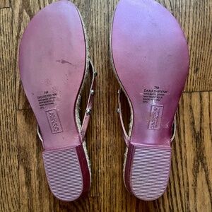 Perfect casual summer attire. Woven rope insoles. Pink metallic straps with studs. New in Box.