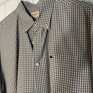 Classic plaid shirt with button-up front and buttoned down collar. Features subtle logo on chest.