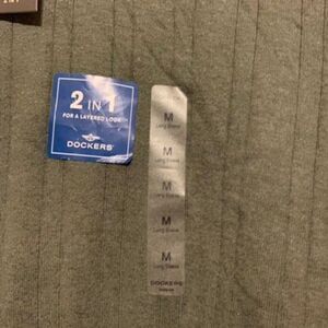 Dockers Premium 2 In 1 Size Medium Green Long Sleeved Shirt. Green V-Neck over Tan mock polo. All one piece. New with tags. Retail $48. 100% cotton, 24” armpit to armpit, 34” long.