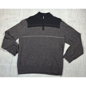 Dockers Quarter Zip Sweater Mens Large Long Sleeve Black Gray Stripes Pullover