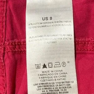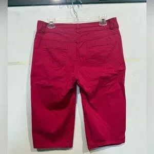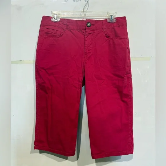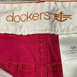 These vibrant raspberry pink capri pants from Dockers offer a polished yet comfortable fit. Featuring a classic five-pocket design and a hint of stretch, they are perfect for transitioning from a morning at the farmers market to a casual afternoon gathering. The rich jewel tone adds a pop of color to your spring and summer wardrobe while maintaining a timeless silhouette. Pairs well with the floral shirt available in another listing.