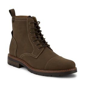 Synthetic leather uppers, Laid-on welt, Lightweight EVA outsole, Rugged casual style. The Dockers® Rawl Combat Boots emit rugged casual style, cast in smooth synthetic leather and laid-on welt uppers with cap toes, lightweight EVA outsole for exceptional comfort.