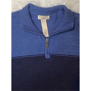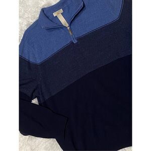 This is a men’s Dockers SZ XL nice 3 shades of blue 1/4 zip pullover sweater.