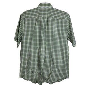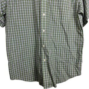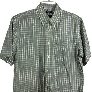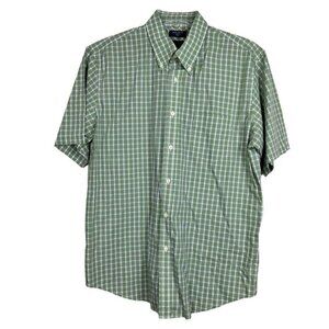 Dockers Shirt Adult Large Green White Plaid Button Up Work Wear Camp Pocket Mens