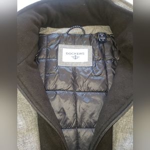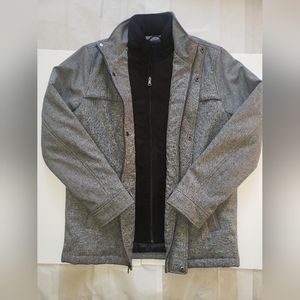 Dockers Soft Shell Jacket with Quilted Bib: Grey and Black: Size Medium.
