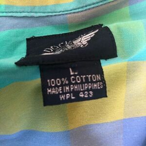 Striped Plaid pastel print button front shirt by Dockers. Women’s large. 100% Cotton.