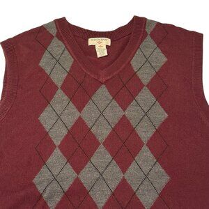 Dockers Sweater Mens L Maroon Argyle Diamond V Neck Preppy Dark Academia