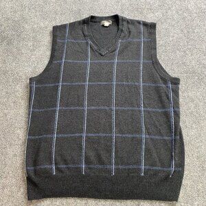 Dockers Sweater Vest Mens XL Gray Blue Checked Pullover Acrylic Preppy Professor