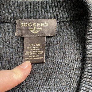 Elevate your wardrobe with this stylish Dockers sweater vest. Featuring a gray with blue check pattern, this tight-knit sleeveless sweater is perfect for any season. The V-neckline and collarless design add a touch of sophistication, while the acrylic material keeps you comfortable all day long.