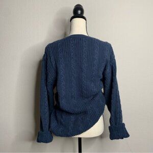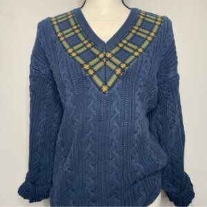 Dockers Vintage Navy Blue Cable Knit Plaid V-Neck Accent Oversized Sweater